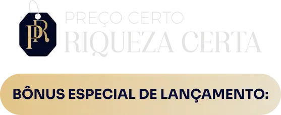 O valor do curso Preço Certo e Riqueza é de R$ 899,00, mas neste lançamento especial 1º turma você pode garantir sua vaga por apenas 12x de R$ 39,70 ou R$ 397 à vista, com 56% de desconto.